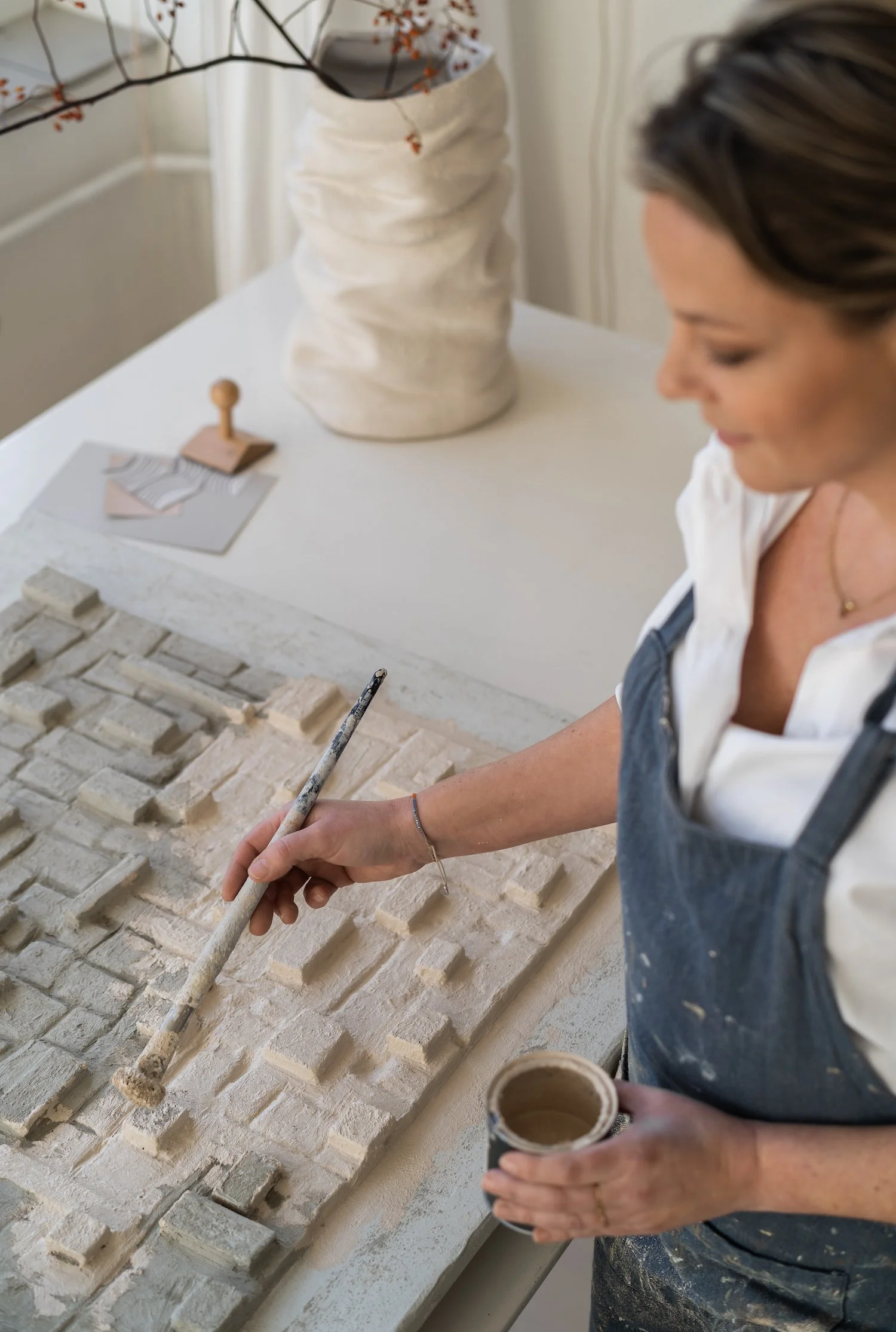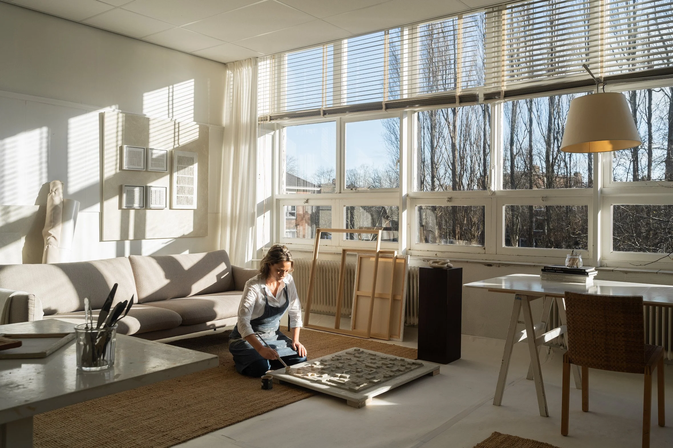 Sintia creates minimalist 3D wall sculptures in neutral tones, shaped by light, shadow, and texture. Her works invite a sense of peace and mindfulness, offering collectors a quiet moment in the midst of daily life. Featured in interior magazines and exhibitions, her pieces now find their way into private collections and she collaborates with galleries and interior designers.
